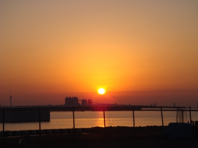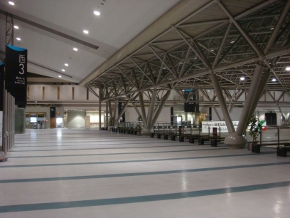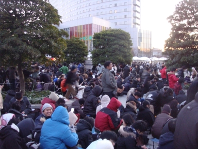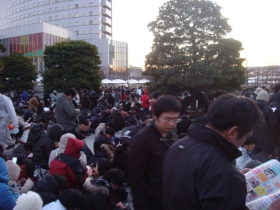 The Big Sight plaza at about 6am on day one. As Big Sight itself is now entirely covered by lines, the attendants are getting people to form lines out here and in the eastern car park.