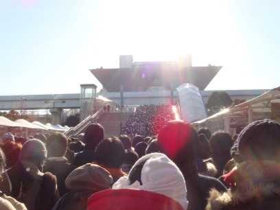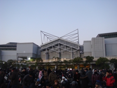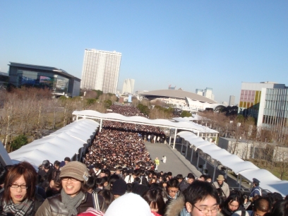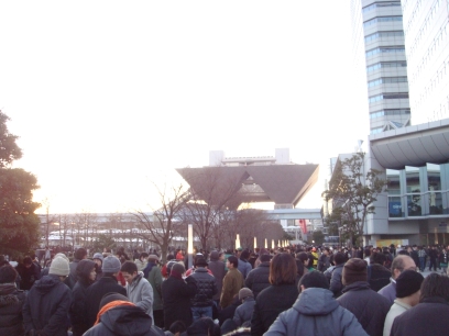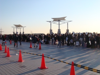 Finally, the line begins to move, and the all-nighters from the plaza are ushered up to Big Sight itself.