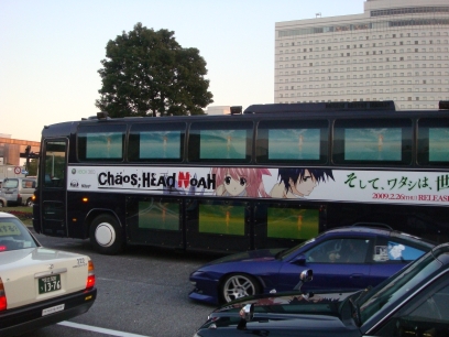 Left: The now somewhat infamous Chaos;Head bus was parked outside the train station.