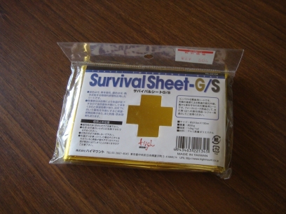 A survival blanket and a pack of chemical heaters. Both are useful for enduring the cold.